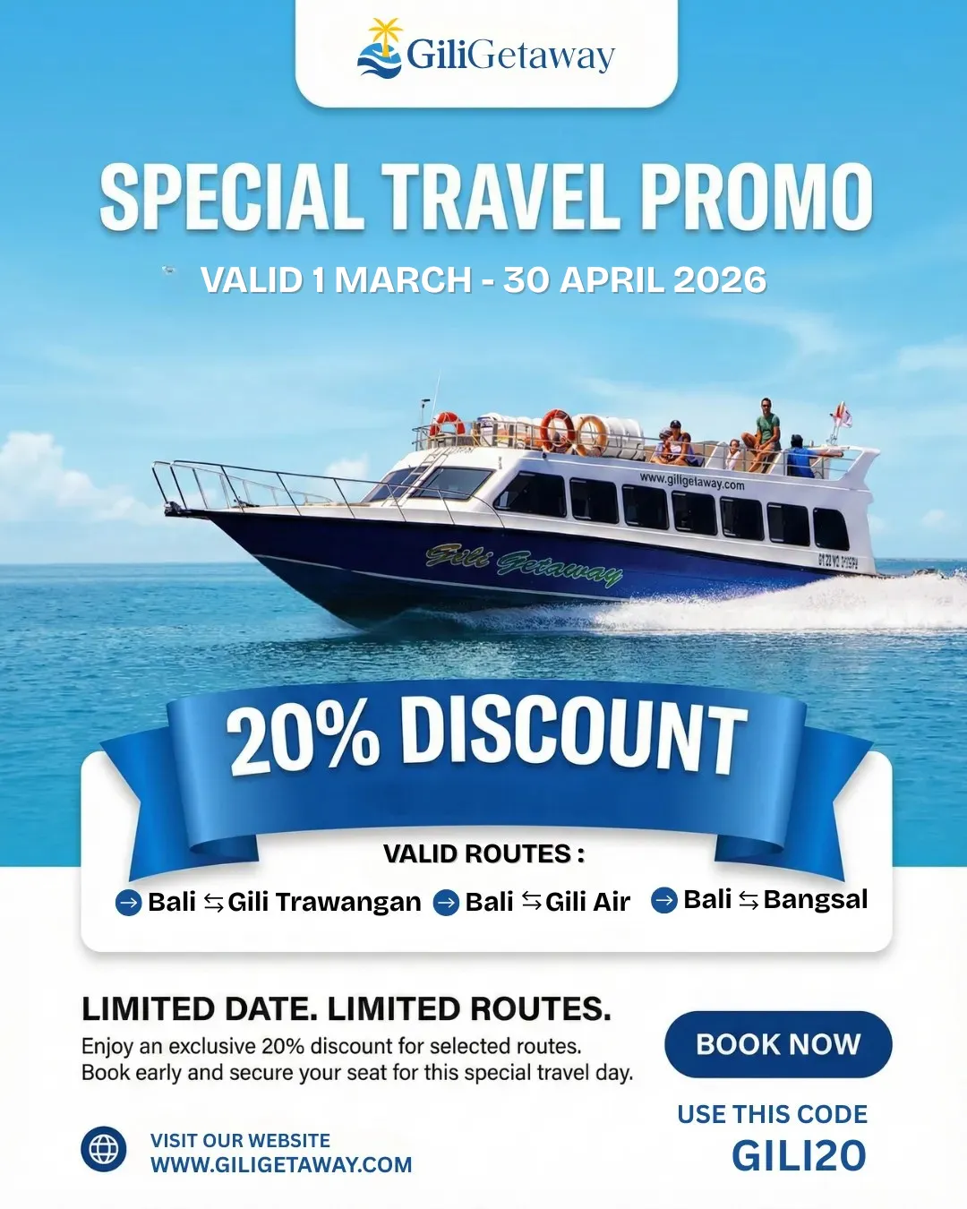 The premier, daily fast boat service to Lombok and the Gili Islands.